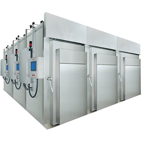 ● 采用模塊化箱體結(jié)構(gòu),排布形式靈活。提供單排或者雙排布置,可以單方向進(jìn)出推車,也可以做成通道式前后開門,并且加裝生熟區(qū)互鎖裝置。
